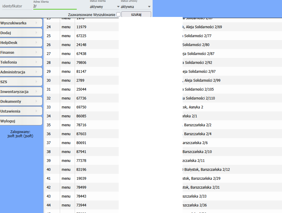 - Wyszukanie po numerze ulicy i lokalu np.: "2/5"