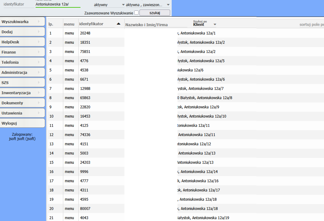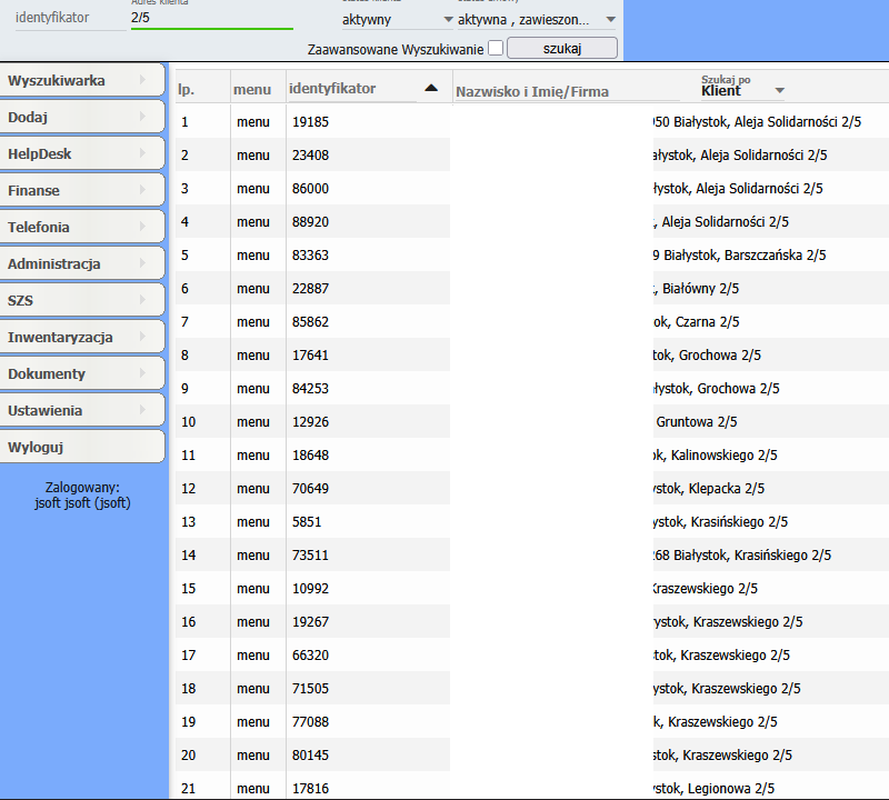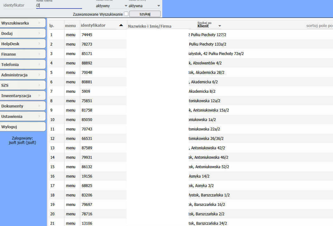 Wyszukiwanie klienta po adresie - opis opcji wyszukania¶